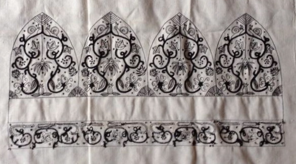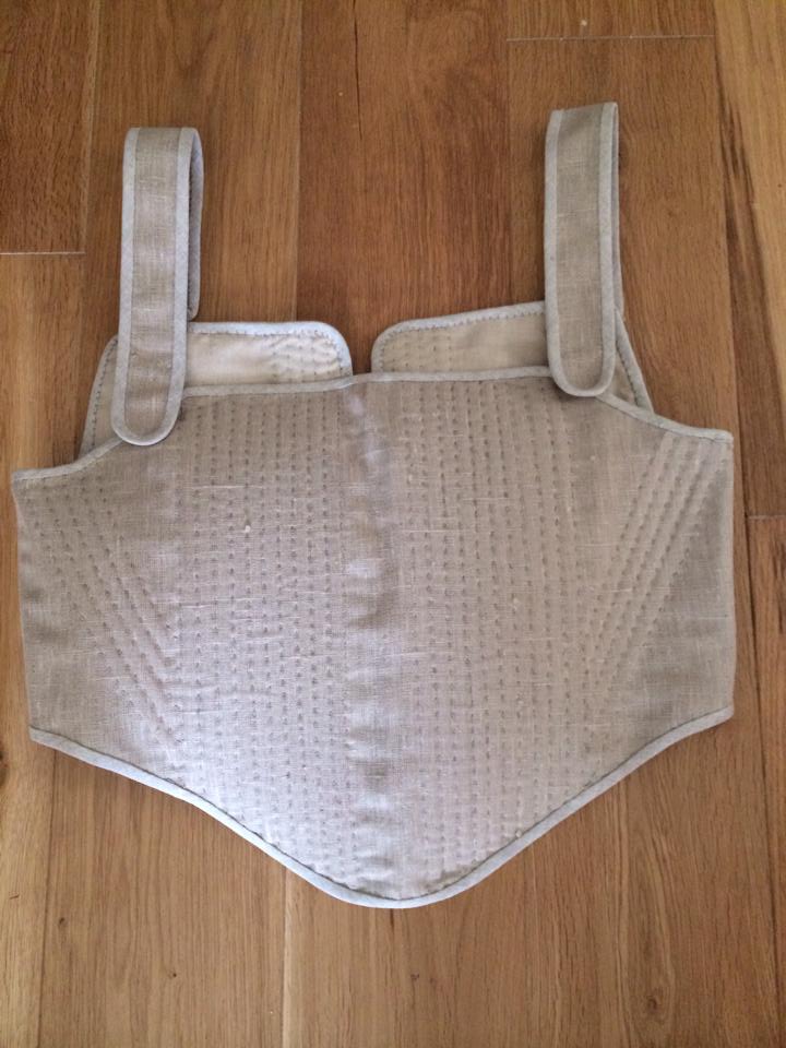 They are being made using a smooth linen lining, coarse linen canvas interlining and hard wearing linen outer. The two photos below show the separate parts being readied for boning. The choice with boning is whether to use synthetic whalebone or reeds. Thin reed boning and flat oval reed boning are available both types of reed make a lovely creaking sound when worn, but need maintenance. The natural dried reeds break if they are allowed to get too dry if they haven’t been worn for a while.