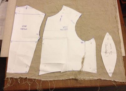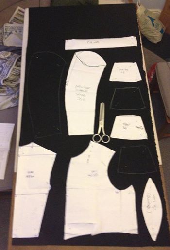 was made up to the correct size and pieces laid out to ensure the pile of the fabric ran in one direction. The fabric was doubled over so that one pattern piece represents two on the paper and to ensure I had the correct number of lefts and rights.